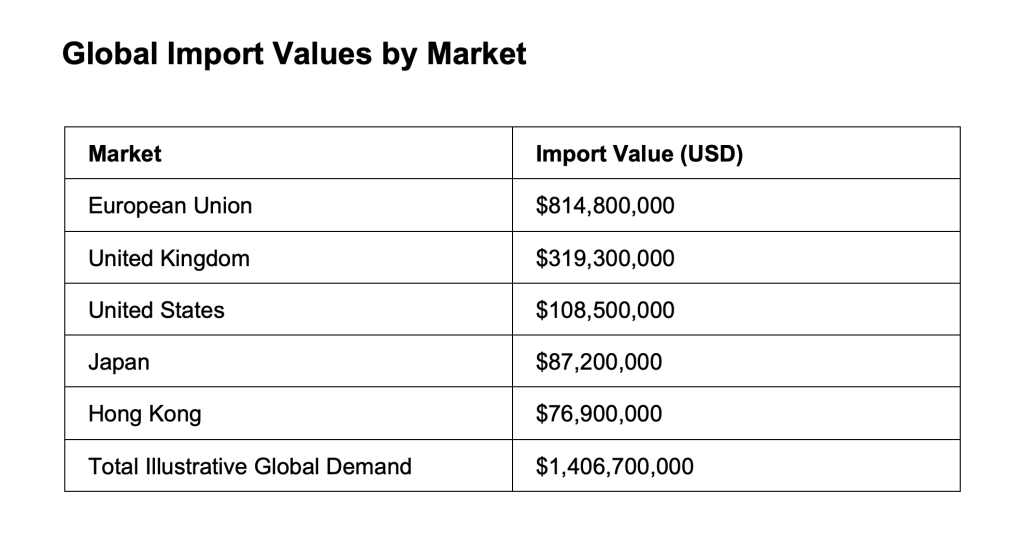 Lesotho’s location provides optimal access to the substantial South African and EU/UK markets, while other global markets remain accessible for frozen exports (e.g. Japan, Hong Kong).
